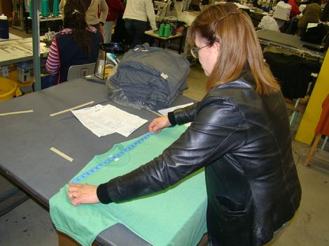 All fabric lots are tested for shrinkage, color fastness and weight before they are cut and sent out for sewing.
